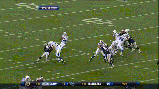 Peyton Manning had the Colts on a comeback attempt, but when he was hit as he threw the ball, it was well underthrown to the intended target, who was Pierre Garcon. That target was also grabbed by the defense, but at least Garcon tries to come back to the ball, which is something Gronkowski never did. The defensive back also had to reach up much higher to make this interception than the Carolina play. Given the reach for the pick and Garcon’s movement, this play was just as close if not closer than what happened Monday night.