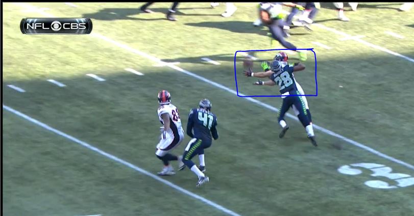 On the next possession, Denver lined up for a 3rd-and-1 run. The Seahawks clearly jumped offsides and the play was stopped for no gain. A flag was thrown, a long conference took place and Vinovich said the defender did not get into the neutral zone. Are you f’n kidding me? He was lined up beyond the ball. Even CBS’ Mike Carey knew this was a penalty.