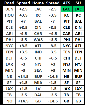 LAR-NYJ: Another game where I’m just going with the underdog at home in a non-conference matchup as Aaron Rodgers waits until it’s entirely too late to start putting up numbers and wins.