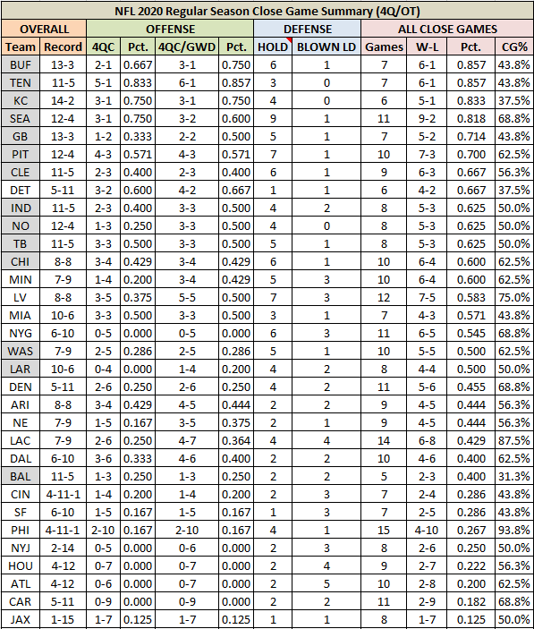 The NFL hasn’t seen a run of luck like this in close games since, well since the 2003-04 Patriots won 21 straight games with a 17-0 record in close games.