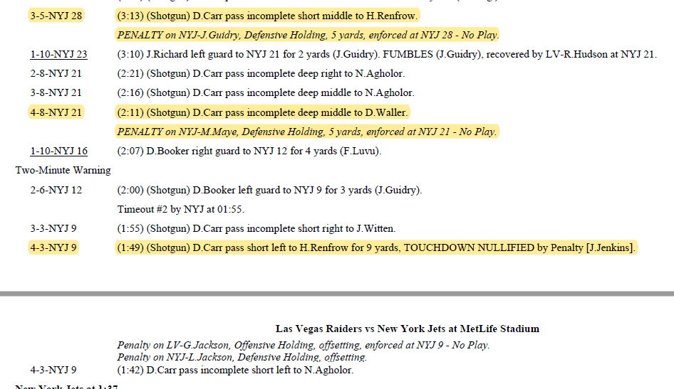 Flacco is a rhythm passer. He needs to get going early and he needs volume. They didn’t do that, so it’s no wonder they only scored two field goals. Their only touchdown was a bogus one on defense on a play that should have been flagged for hitting Sam Darnold in the face, but apparently he doesn’t get those whistles this year (see missed facemask vs. Rams last week).