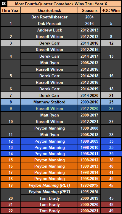 - The Saints are the only team without a fourth-quarter comeback win since the 2023 season started (0-4 in those one-score opportunities this year).