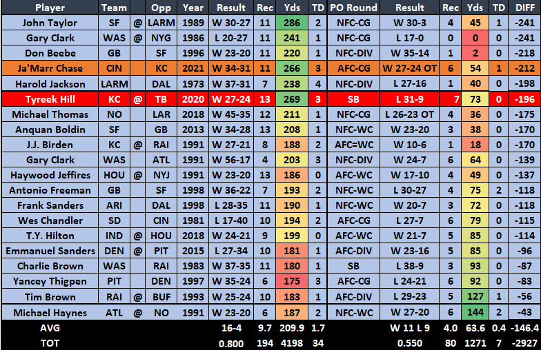 As the favorite in the final four this year, the Chiefs just had to hold onto a 21-3 lead to become the fourth team to go to three straight Super Bowls. Instead, they became the fourth team in NFL playoff history to blow an 18-point lead at home and the first to do it in a championship game. In the process, the Bengals are the first team in NFL history to beat an opponent twice in the same season after trailing by double digits at halftime. The 18-point blown lead is the largest of the Patrick Mahomes era, and the Bengals own a tie for the second largest at 14 points in Week 17.
